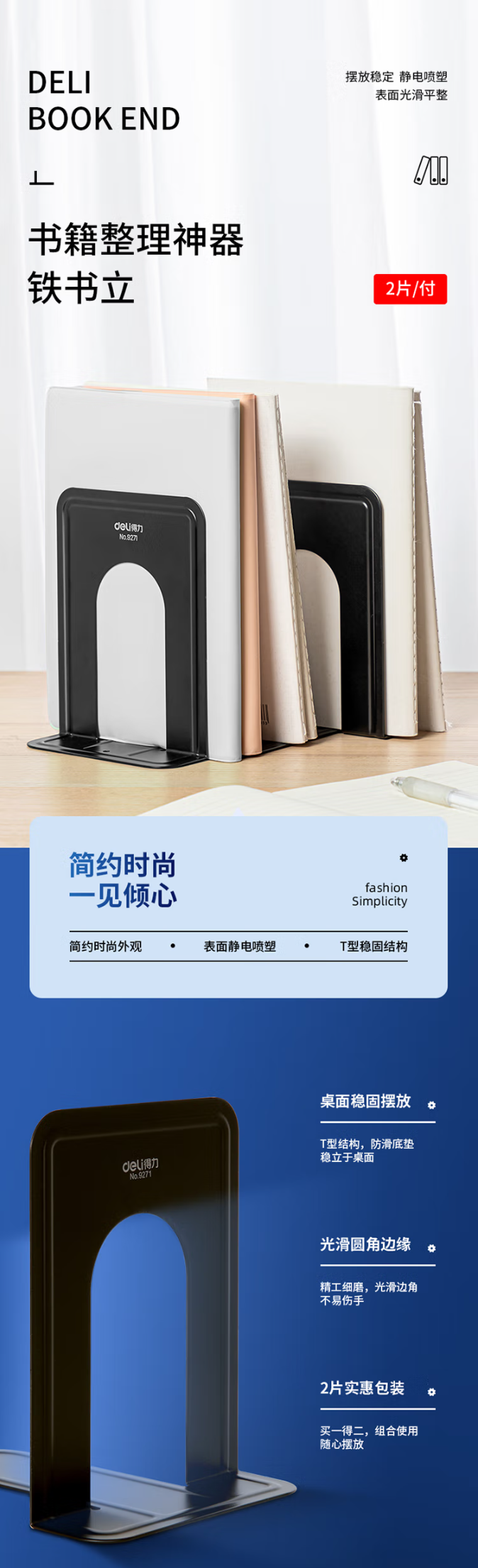 得力(deli)9271 铁书立 15*11.8cm2片/付 黑色 zxk-251108160520
