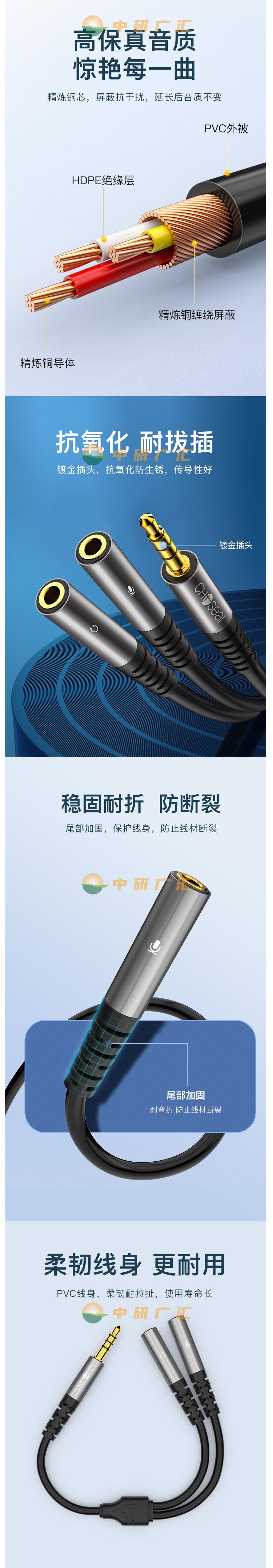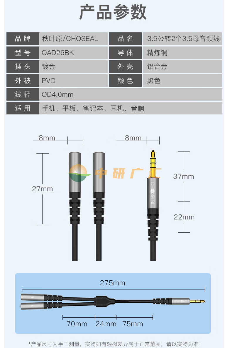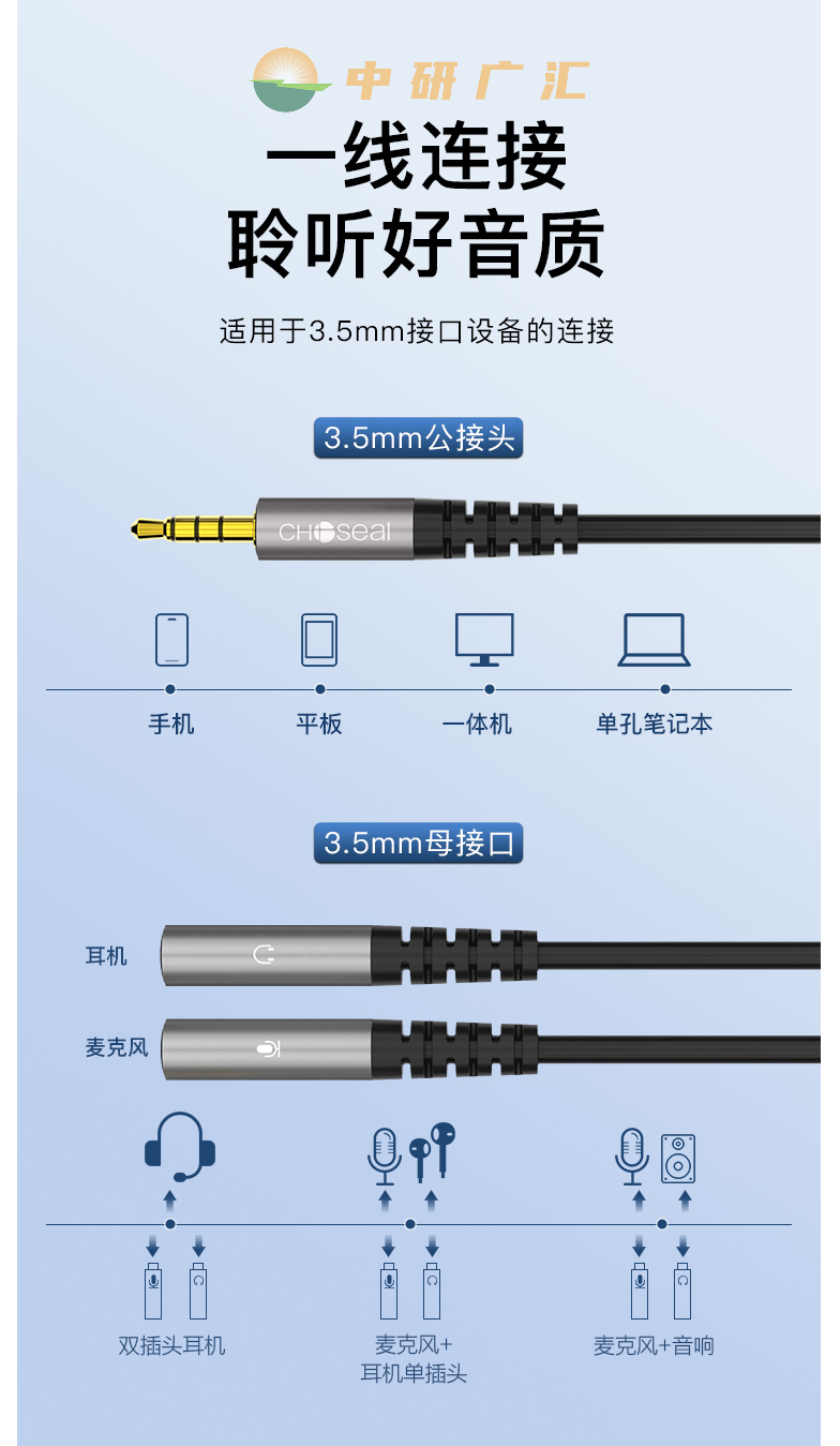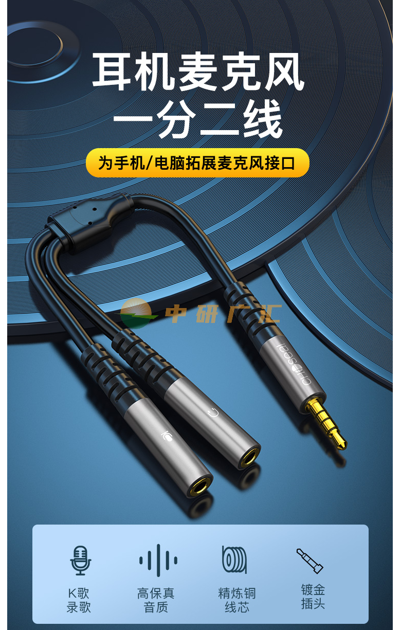 秋叶原(CHOSEAL)耳机麦克风一分二 3.5mm音频1分2公对母手机二合一 0.2米 QAD26BKT0D2 zxk-251108163818