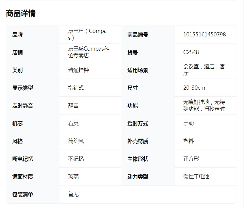 康巴丝(Compas) 挂钟客厅2025款家用大气方形石英钟办