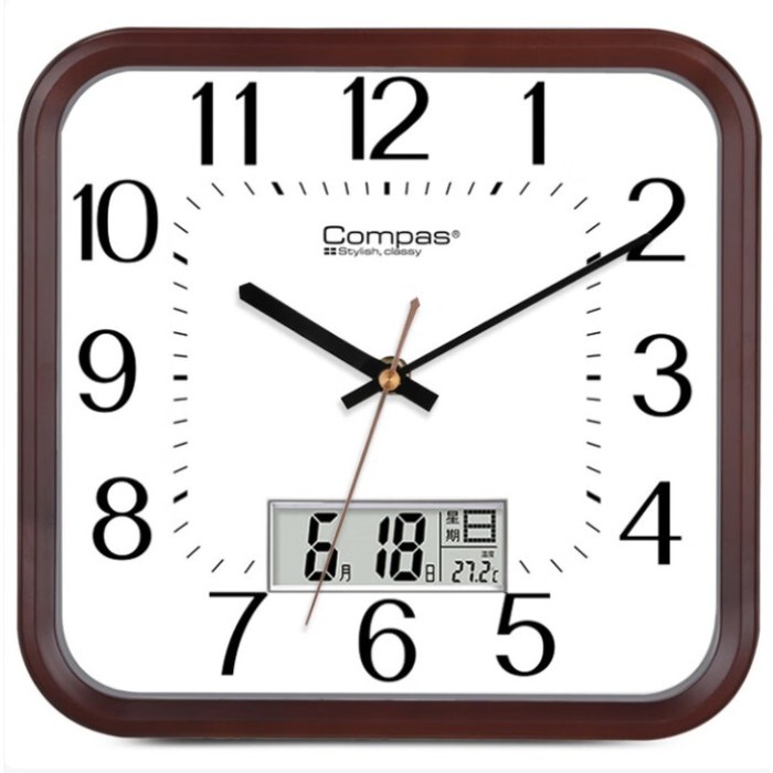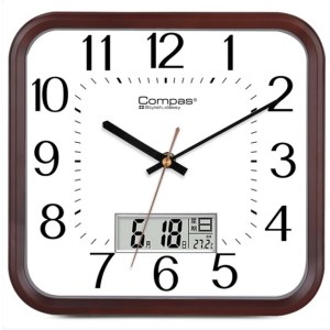 康巴丝(Compas) 挂钟客厅2025款家用大气方形石英钟办公时钟挂墙卧室钟表 2548日历橡木(25*25cm)zxk-251108171108