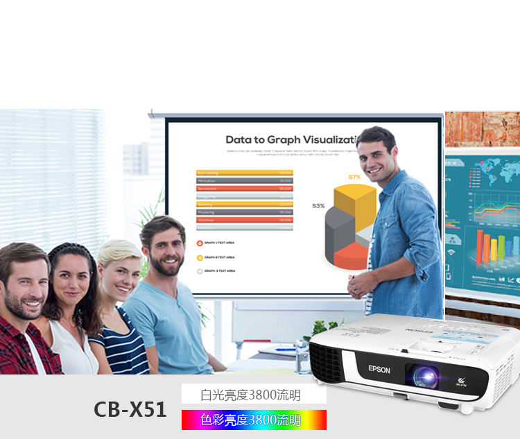 爱普生(EPSON)CB-X51 3LCD家用投影机 3800流明/1024*768分辨率/16000:1对比度