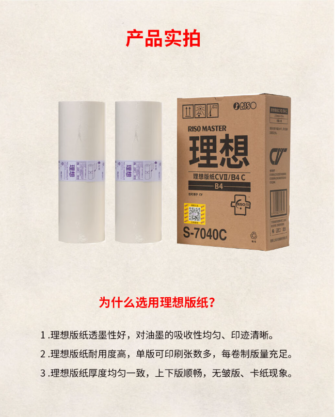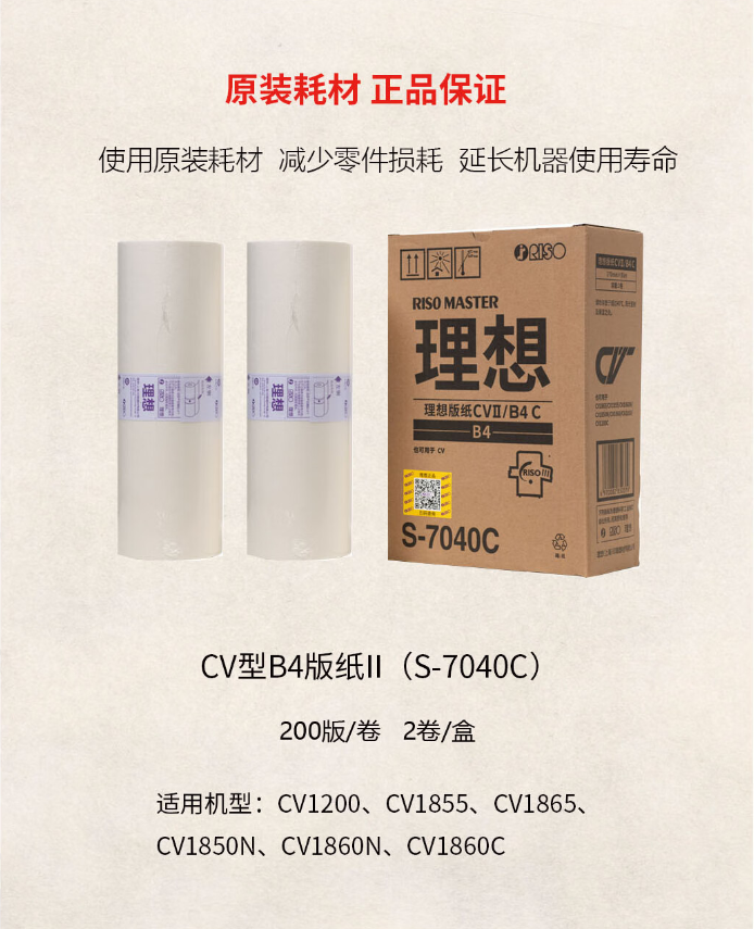 理想 (RISO) CVB4版纸II(S-7040C) 适用于:CV系列CV1855/CV1865/CV1200机型 一盒装 每盒2卷 zxk-251202140431